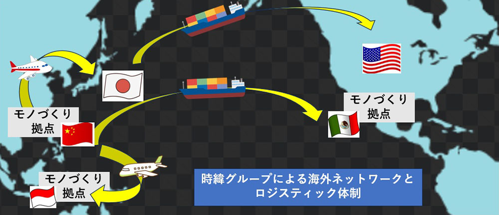 中国、アメリカ、メキシコ、タイ、インドネシア、そして日本のモノづくり拠点を駆使し、世界中のお客様へグローバル調達によって見極めたベストな商材をご提供します。